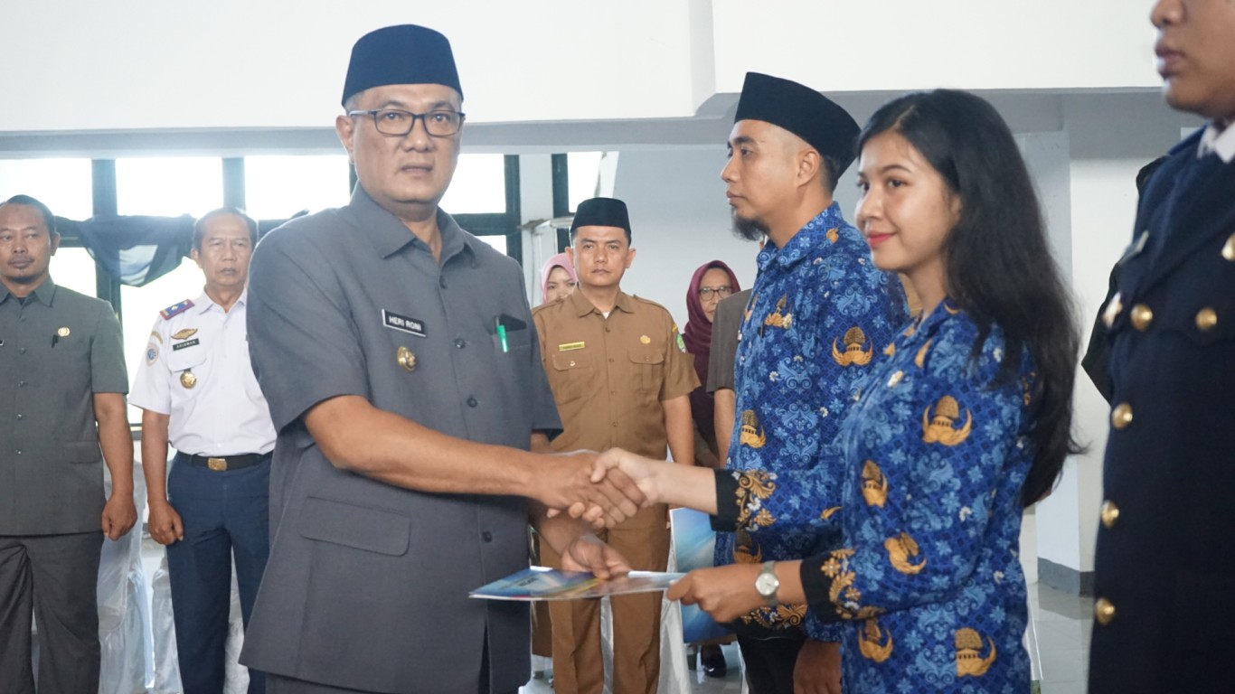" Kontribusi sangat di butuhkan dalam peningkatan pelayanan dan pembangunan di pemerintahan. Inovasi yang mengedepankan sumpah/janji seorang PNS juga menjadi acuan sebagai bentuk pembangunan di daerah. Di harapkan kepada PNS yang baru saja menerima SK dan di ambil Sumpah/Janjinya dapat selalu menegakkan kedisiplinan, terus berkompetensi, dan bekerja keras untu melayani masyarakat." Jelasnya