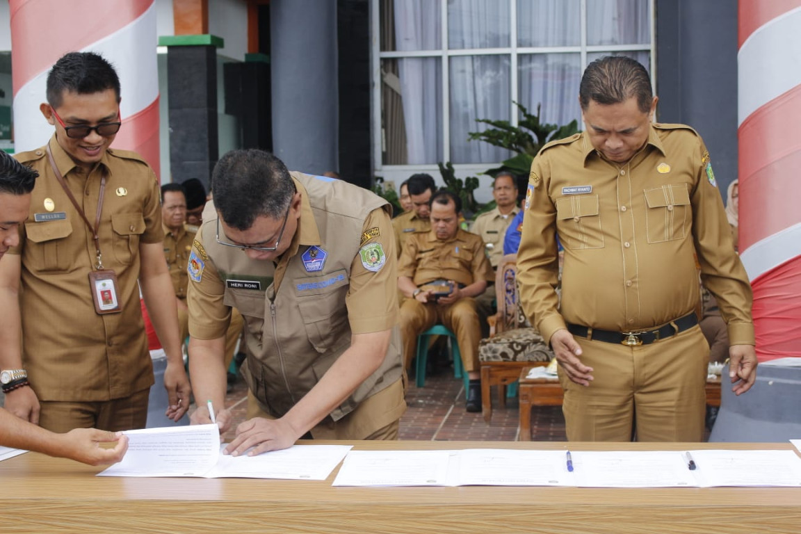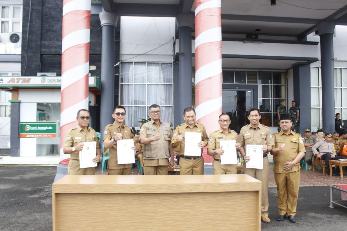 BENGKULU TENGAH - Pemerintah Kabupaten Bengkulu Tengah menggelar Apel Gabungan kesiapan siaga pasukan dan peralatan dalam rangka mengantisipasi terjadinya bencana alam sekaligus Penandatanganan Perjanjian Kinerja Organisasi Perangkat Daerah (OPD) serta simulasi siaga bencana.