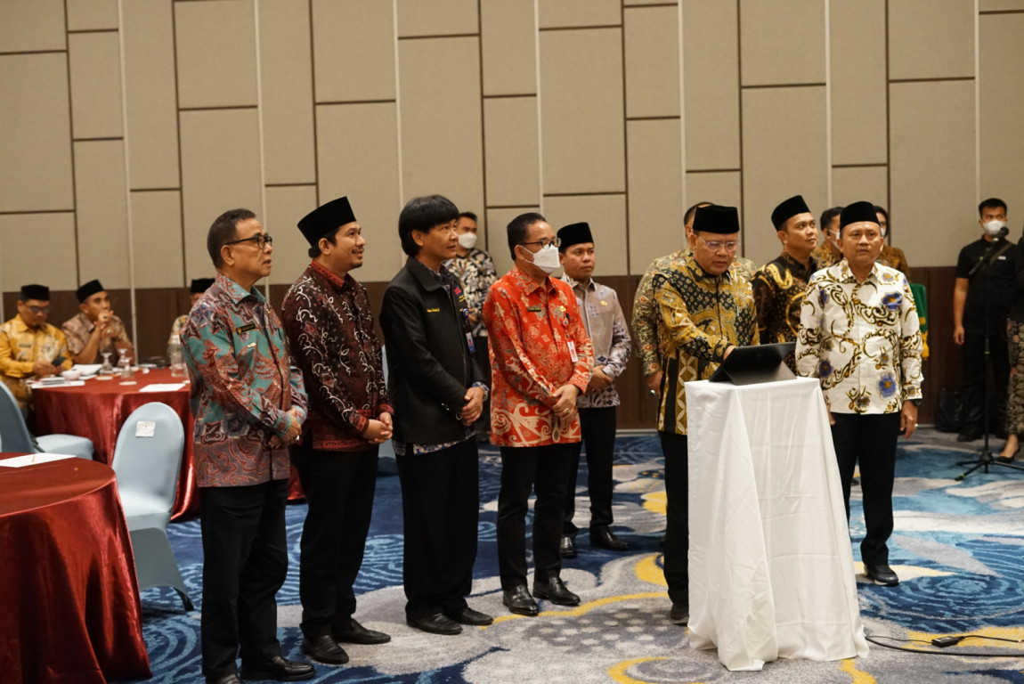 BENGKULU - Penjabat Bupati Bengkulu Tengah melalui Asisten Bidang Pemerintahan dan Kesejahteraan Rakyat Nurul Iwan Setiawan, S.Sos., M.Si., menghadiri Rapat Koordinasi dan launching Aplikasi Elektronik- Laporan Penyelenggaraan Pemerintahan Daerah (e-LPPD) di Ball Room Hotel Mercure. Jum'at Siang (5/8/2022)