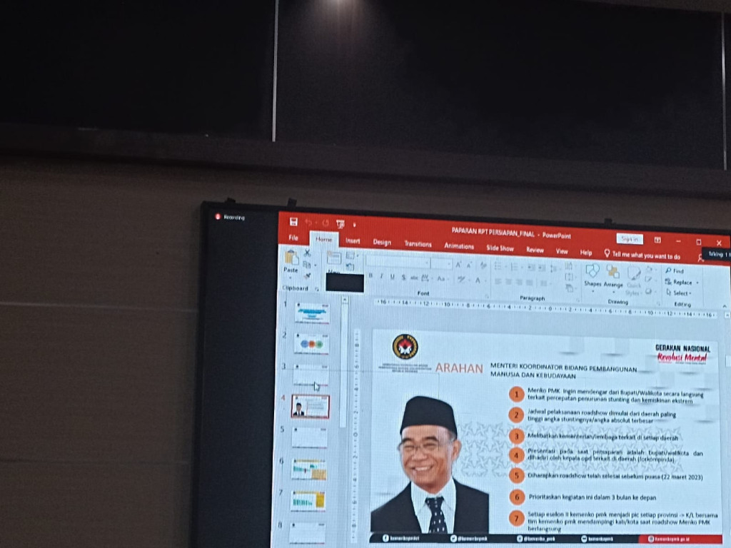 BENGKULU TENGAH- Asisten I Bidang Administrasi, Pemerintah dan Kesra Nurul Iwan Setiawan, S.Sos.,M.Si di dampingi Kepala Dinas Kesehatan dan Kepala Dinas P3AP2KB mengikuti Zoom Meeting dengan Menteri Koordinator Bidang Pembangunan Manusia dan Kebudayaan Republik Indonesia tentang persiapan Roadshow dalam rangka Percepatan Penurunan Angka Stunting dan Penghapusan Kemiskinan Ekstrim Kabupaten/Kota di Provinsi Bengkulu.