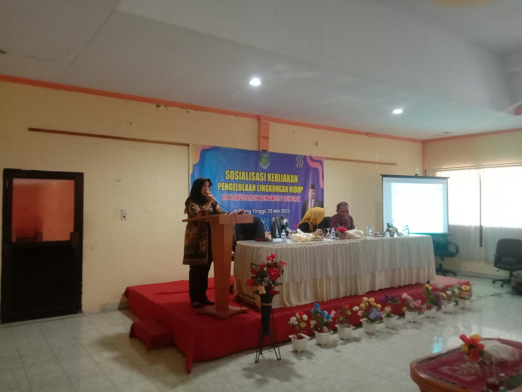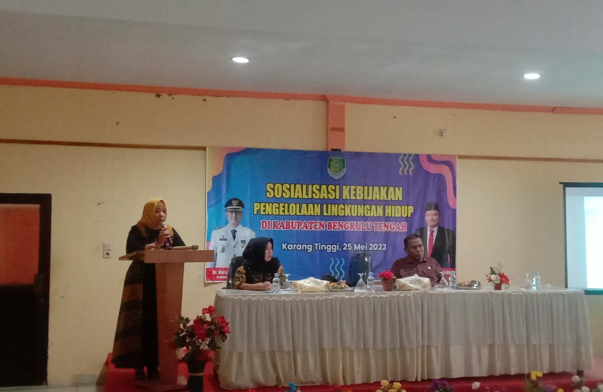 Bengkulu Tengah, MC Benteng - Asisten II Eka Nurmaeni S.E. , M.Pd membuka secara langsung forum sosialisasi kebijakan Pengelolaan Lingkungan Hidup bertempat di Aula Maroba Bengkulu Tengah.(25/05/2023)