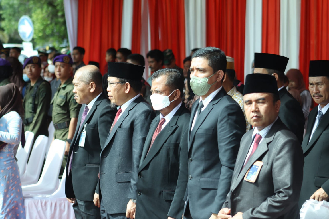 BENGKULU TENGAH- Asisten III Bidang Adm. Umum H. Elyandes Kori, SE.,M.Si mengahadiri acara Upacara Peringatan Hari Ulang tahun Tentara Nasional Indonesia (TNI) ke-77 Tahun. Mengusung tema "TNI adalah Kita," berlangsung di Lapangan Upacara Kantor Gubenur Bengkulu Rabu pagi (05/10).