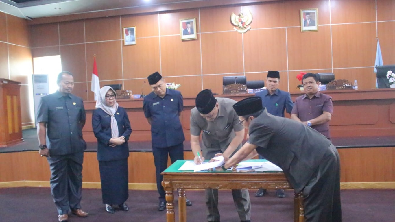 BENGKULU TENGAH-Dewan Perwakilan Rakyat Daerah (DPRD) Kabupaten Bengkulu Tengah menggelar Rapat Paripurna dengan agenda mendengarkan Nota Pengantar Bupati terhadap Raperda APBD tahun anggaran 2024 dan pada waktu yang bersamaan dilanjutkan juga rapat paripurna Penanda tanganan APBD perubahan tahun 2023.