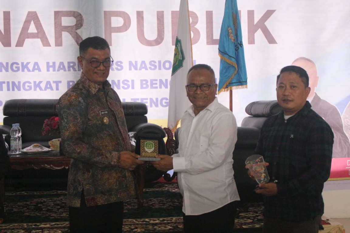 "saya selaku mewakili Pemkab Bengkulu Tengah mengucapkan selamat dan terima kasih karena telah mempercayai Benteng sebagai tuan rumah Pada peringatan Hari Pers Nasional (HPN) bertepatan juga dengan HUT Benteng ke 15. Semoga kedepannya kita dapat menjalin sinergi yang kuat dalam meningkatkan SDM melalui seminar publik ini sehingga dapat memberikan kesejahteraan bagi masyarakat Bengkulu Tengah", ujarnya.