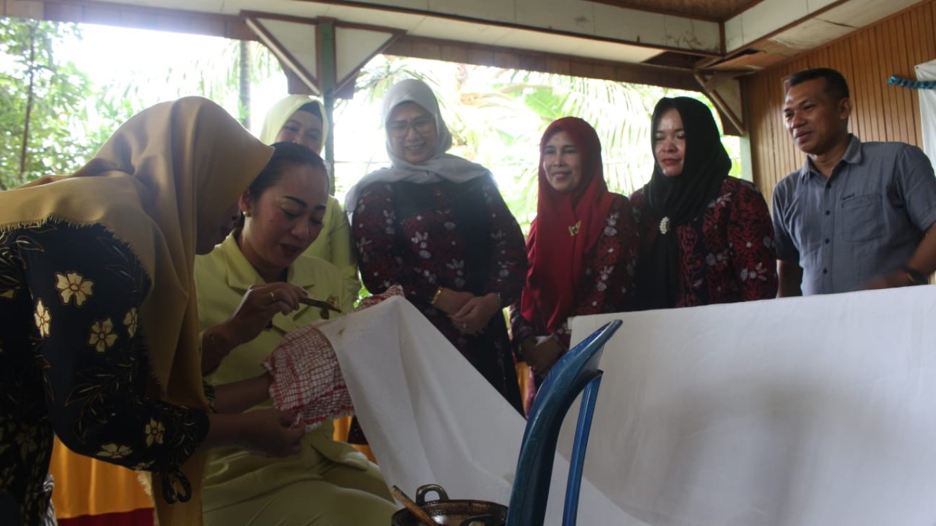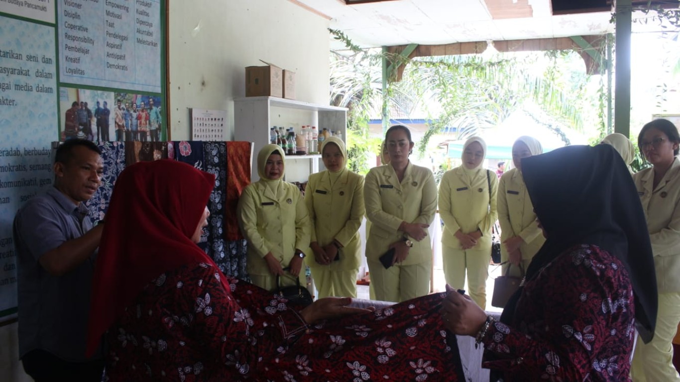 BENGKULU TENGAH- Ketua Ikatan Adhyaksa Dharmakarini (IAD) Kejaksaan Negeri (Kejari) Bengkulu Tengah Ny. Vika Firman Halawa dan rombongan didampingi Pj Ketua TP PPK sekaligus Ketua Dekranasda dr. Dian Heri Roni serta anggota melakukan kunjungan ke salah satu pengrajin batik tepatnya di Desa Panca Mukti Kecamatan Pondok Kelapa Jumat siang 04/08).