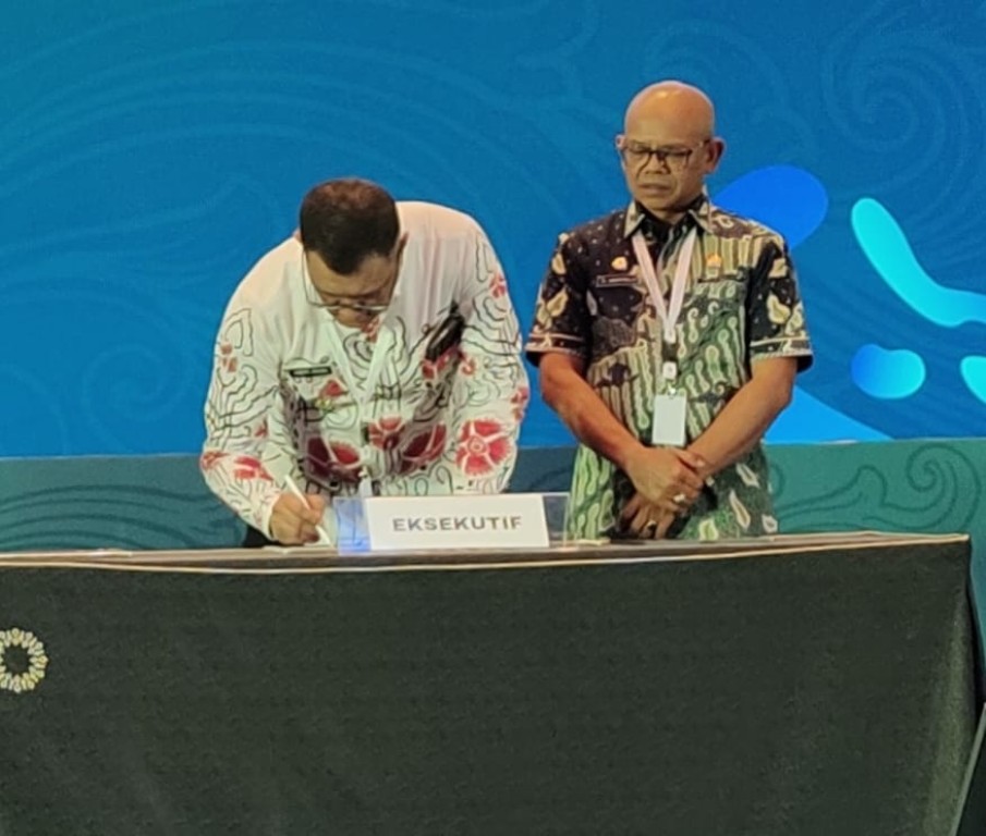 Bali, MC Benteng - Penjabat Bupati Bengkulu Tengah Dr. Heriyandi Roni, M.Si., melakukan penandatanganan nota kesepakatan untuk berkomitmen bersama pemerintah daerah dalam pengembangan program Air Minum perkotaan yang berlangsung di Hotel Trans Resort Bali. Kamis (3/8/2023)