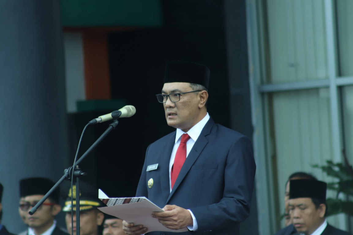 Pj. Bupati Bengkulu Tengah membacakan amanat dari menteri Pemuda dan Olahraga RI Zainudin Amali.