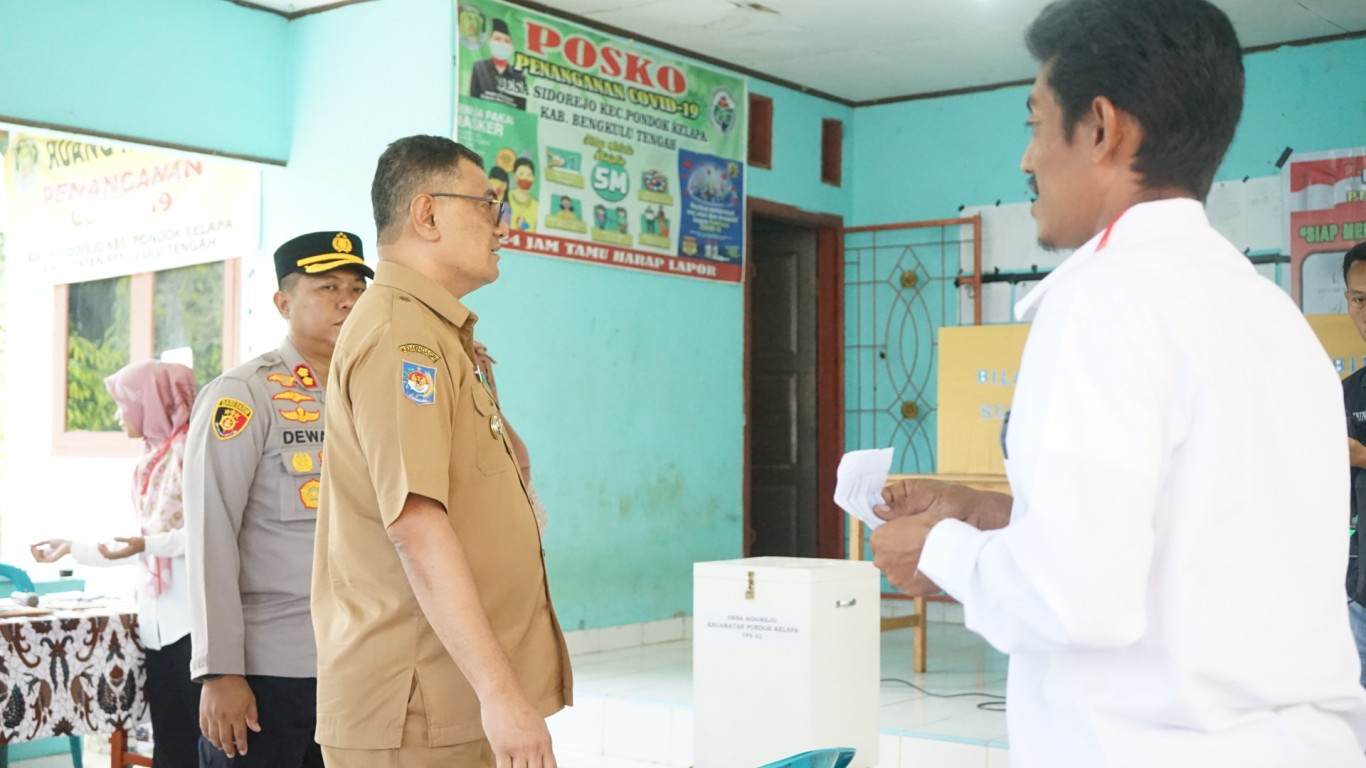 Bengkulu Tengah, MC Benteng - Dalam rangka melaksanakan Pemilihan Kepala Desa (Pilkades) serentak tahun 2023, Pemerintah Kabupaten Bengkulu Tengah melalui Penjabat Bupati Dr. Heriyandi Roni, M.Si., di dampingi Sekretaris Daerah Drs. Rachmat Riyanto, S.T., M.AP., bersama jajaran Forkopimda melakukan monitoring secara langsung ke 5 Desa dari 19 Desa yang melaksanakan Pilkades tahun 2023.