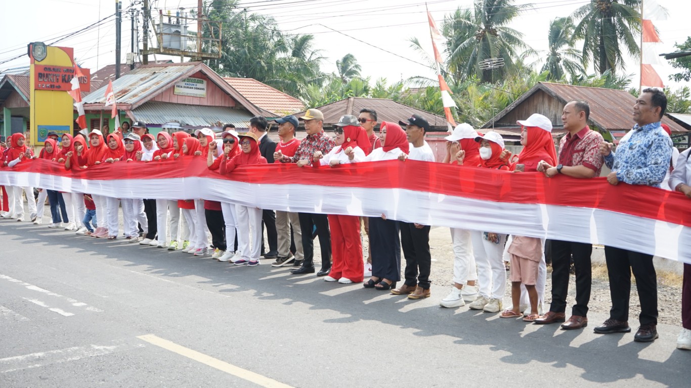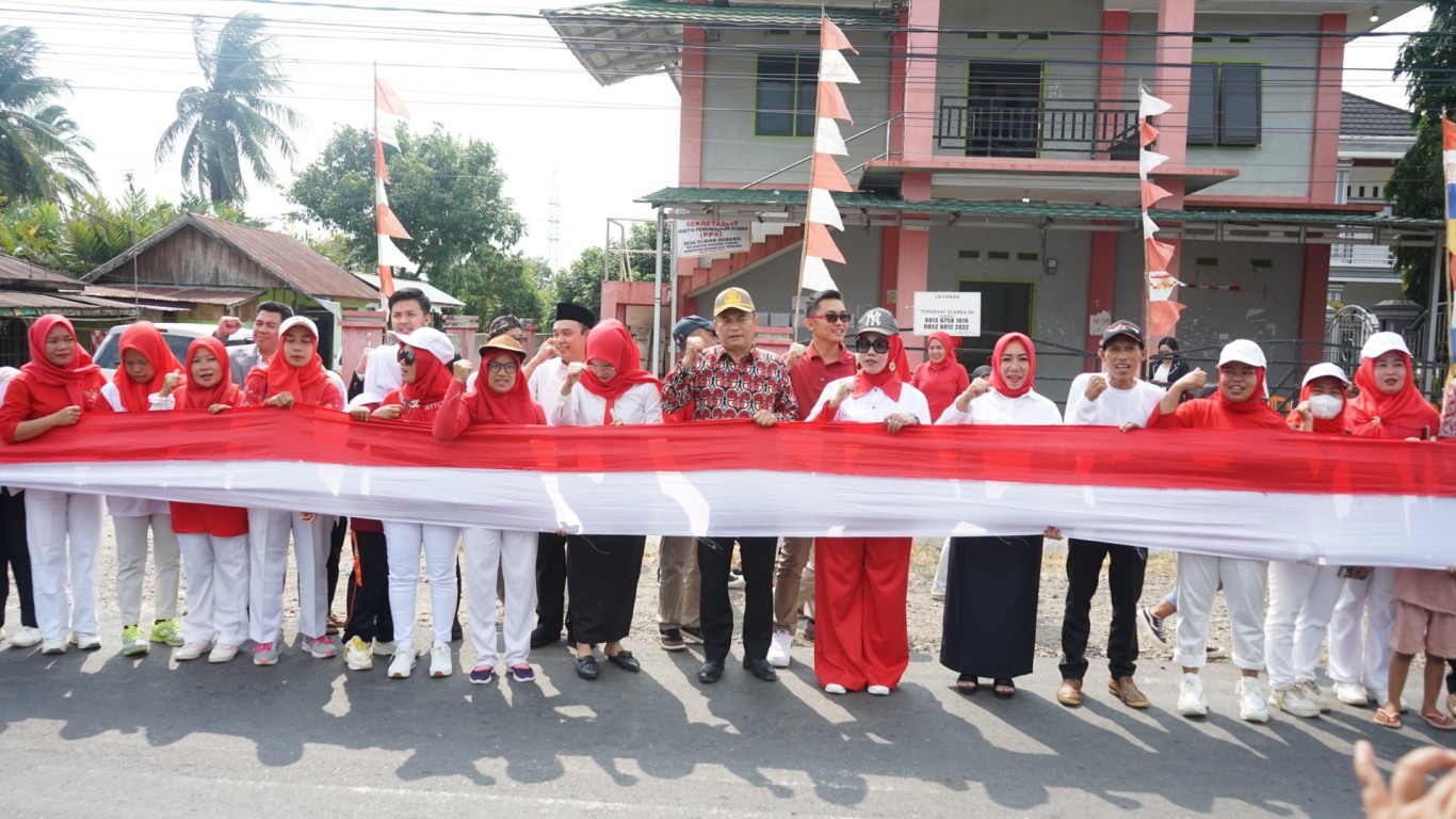 Bengkulu Tengah, MC Benteng - Sekretaris Daerah Bengkulu Tengah Drs. Rachmat Riyanto, S.T., M.AP., mengikuti kegiatan pembentangan Bendera sepanjang 1 Kilometer (1000 meter) yang di adakan oleh Tim Penggerak (TP) Pembinaan Kesejahteraan Keluarga (PKK) Desa Durian Demang Kecamatan Karang Tinggi. Kamis Siang (17/8/2023)