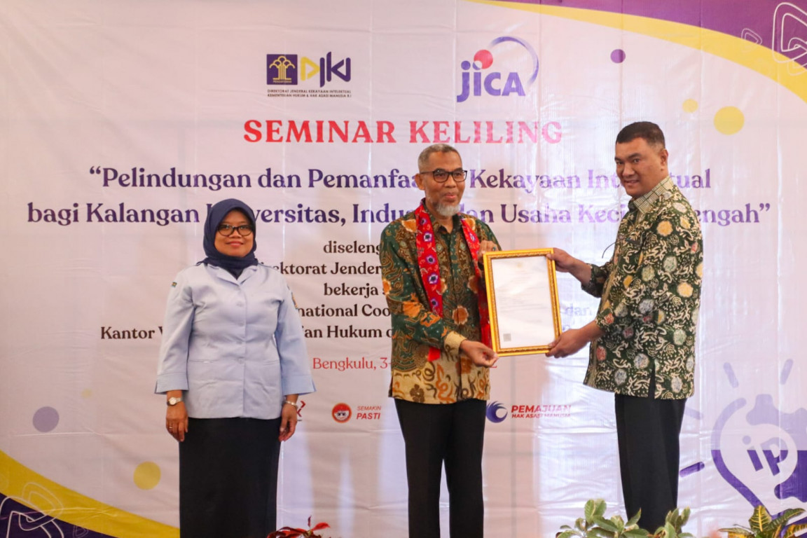 BENGKULU - Penjabat Bupati Bengkulu Tengah Dr. Heriyandi Roni, M.Si., menghadiri pembukaan Seminar Keliling Kekayaan Intelektual (KI) yang bekerja sama dengan Japan Internasional Cooperation Agency (JICA) serta Kanwil KemenkumHAM Provinsi Bengkulu.