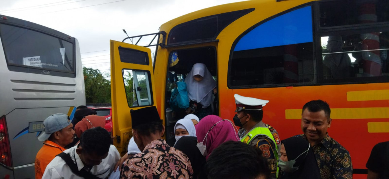 " Jemaah haji asal kabupaten kita alhamdulilah kembali dengan selamat dan sehat semua sebanyak 42 orang, mereka semua telah melaksanakan swab antigen di asrama haji dan telah melaksanakan penyerahan dari provinsi ke Kabupaten. Selanjutnya dari semua jemaah haji yang telah di sambut baik kepulangannya di Kantor Bupati pada siang ini dan akan di pulangkan ke kediaman masing-masing". Demikian (MC/EK)