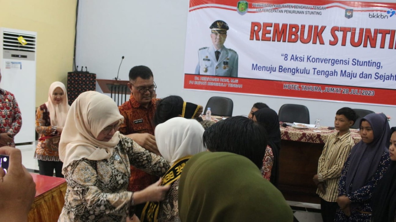 BENGKULU TENGAH- Dalam rangka percepatan upaya menurunkan angka Stunting di Kabupaten Bengkulu Tengah, Pemkab Benteng menggelar Rembuk Stunting dan Pengukuhan Duta Genre dengan tema " 8 Aksi Konvergensi Stunting menuju Bengkulu Tengah Maju dan Sejahtera"