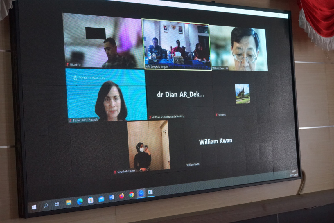 Diskusi berlangsung secara zoom meeting di Ruang Rapat Bupati (RRB) Kantor Bupati Bengkulu Tengah. Kamis (3/11/2022)