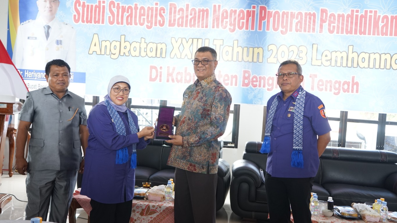 Bengkulu Tengah, MC Benteng - Pemerintah Kabupaten Bengkulu Tengah menerima kunjungan rombongan Lembaga Ketahanan Nasional (Lemhannas) Republik Indonesia (RI) dalam rangka Studi Strategi Dalam Negeri (SSDN) Program Pendidikan Singkat Angkatan (PPSA) XXIV tahun 2023 bertempat di Pendopo Bukit Kandis Desa Ujung Karang Kecamatan Karang Tinggi Kabupaten Bengkulu Tengah. Kamis (13/7/2023)