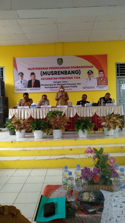 " Terkhusus kecamatan pematang tiga pada hari ini menjadi kecamatan penutup atau yang terakhir melaksanakan Musrenbang. Setelah Musrenbang di setiap kecamatan ini nantinya akan ada Musrenbang Kabupaten yang akan secepatnya di jadwalkan oleh pihak Bappeda". Ungkapnya.