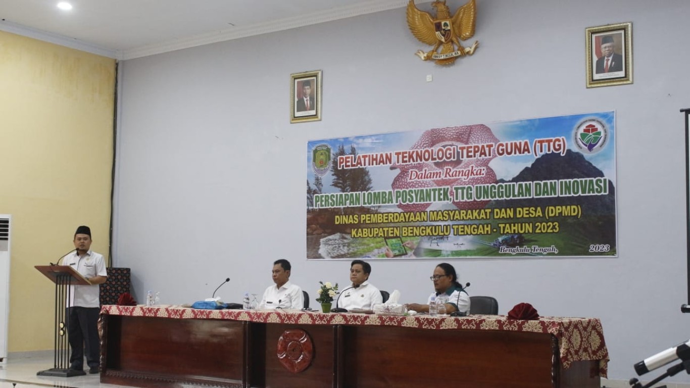 BENGKULU TENGAH- Pemkab Bengkulu Tengah melalui Dinas Pemberdayaan Masyarakat dan Desa (PMD) menggelar Pelatihan Teknologi Tepat Guna (TTG) 2023 dalam rangka persiapan Lomba Pos Pelayanan Teknologi (Posyantek), TTG Unggulan dan Inovasi.
