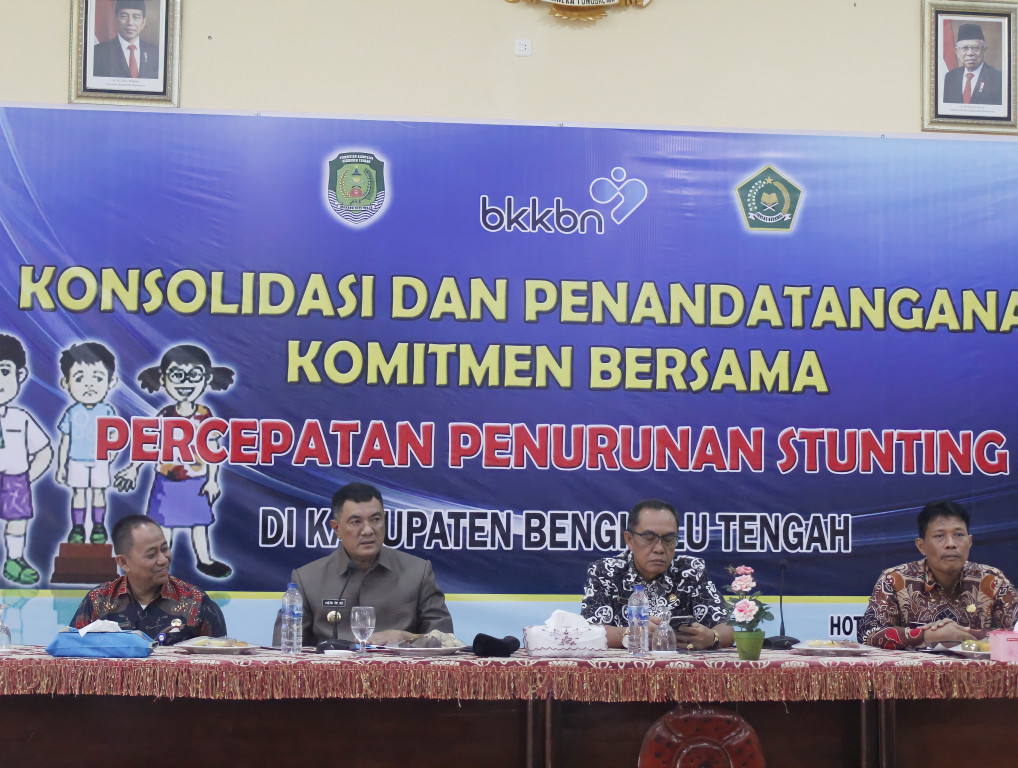 Bengkulu Tengah – Sesuai dengan amanat peraturan presiden Nomor 72 Tahun 2021, tentang upaya pemerintah berkomitmen untuk mempercepat penurunan stunting, Pemerintah Kabupaten Bengkulu Tengah melakukan Kegiatan Konsolidasi dan Penandatanganan Komitmen bersama, di Aula Hotel Tahura Kamis, (15/09/2022).