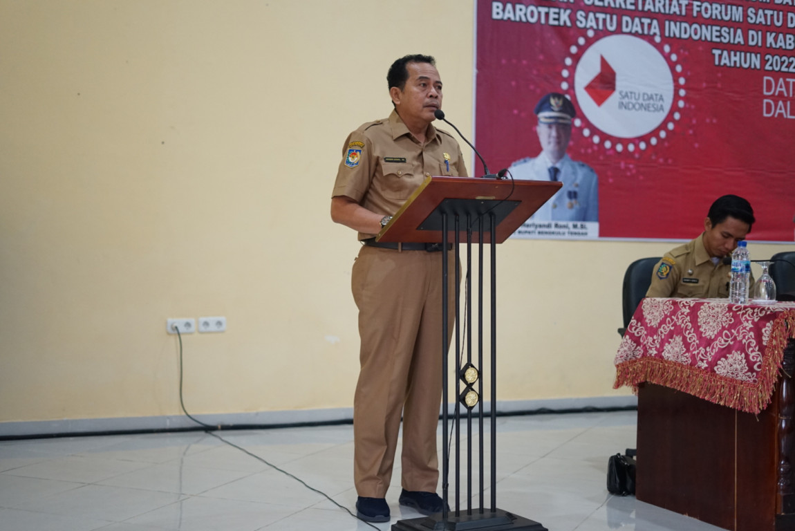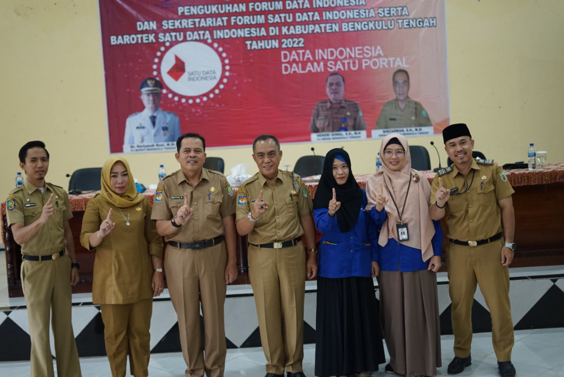 BENGKULU TENGAH - Menindaklanjuti peraturan Bupati nomor 10 tahun 2022 tentang penyelengaraan satu data Indonesia dan keputusan Bupati nomor 050-188 tahun 2022 tentang forum satu data dan sekretariat forum satu data Indonesia, maka pemerintah Daerah Kabupaten Bengkulu Tengah melalui Badan Perencanaan dan Pembangunan Daerah (Bappeda) melaksanakan Pengukuhan Forum satu dan Sekretariat Forum satu data Indonesia.