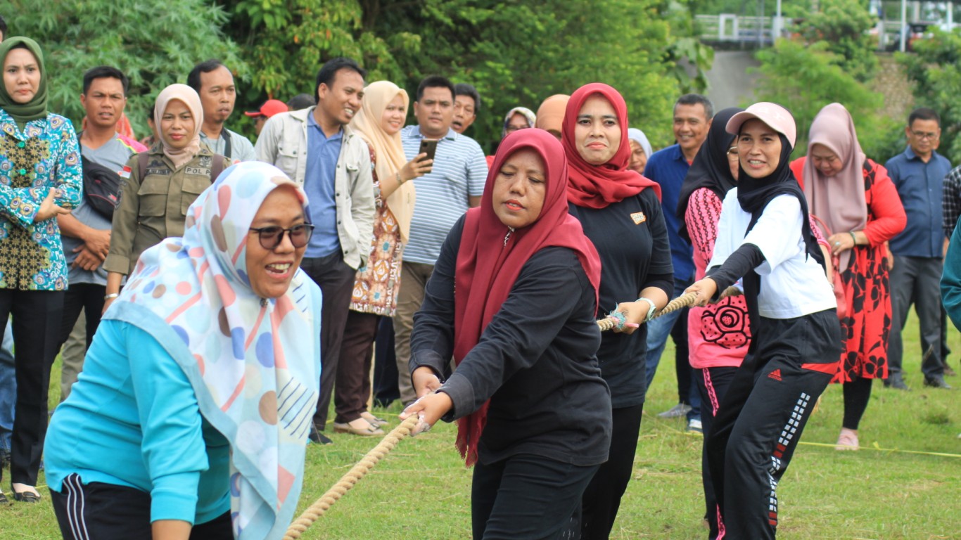 Bengkulu Tengah - Pemerintah Kabupaten Bengkulu Tengah melalui Dinas Pariwisata menyelanggarakan lomba tarik tambang antar OPD dalam memperingati HUT Kabupaten Bengkulu Tengah yang ke 15 di Halaman Belakangan Kantor Bupati, Kamis (15/06/2023).
