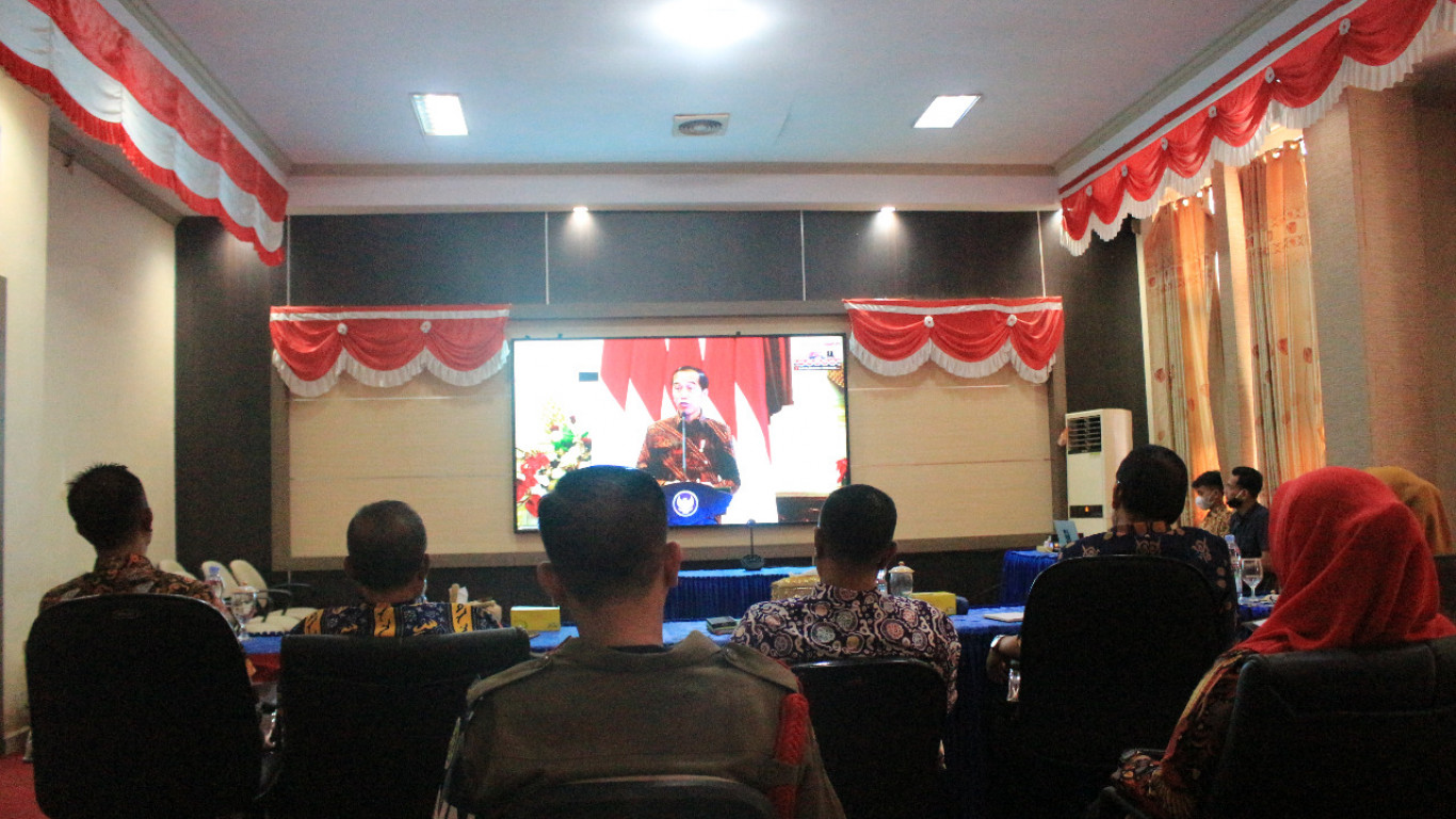 Rakornas ini berlangsung secara virtual di Ruang Rapat Bupati (RRB) Kamis (18/08).