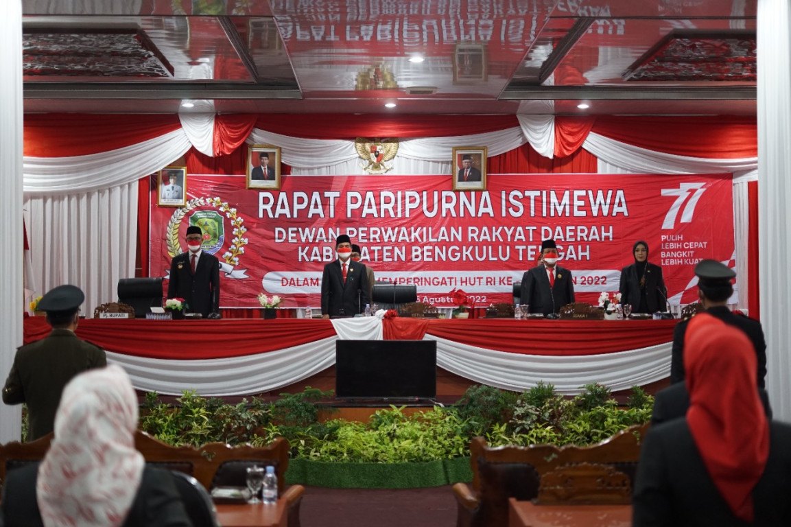 Kegiatan mendengar secara bersama Pidato Presiden berlangsung di Ruang Gunung Bungkuk, Kantor DPRD Kabupaten Bengkulu Tengah. Selasa (16/8/2022)