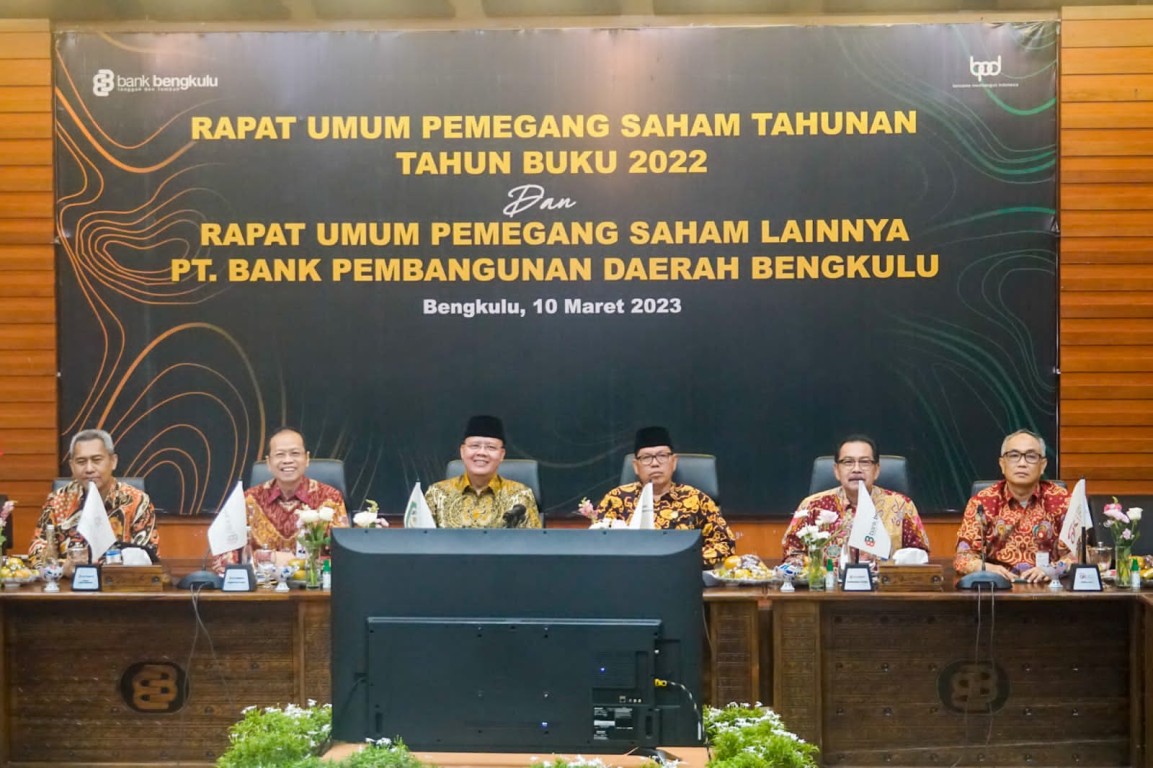 " Pada tahun 2022 kinerja Bank Bengkulu sangatlah cemerlang, yang mana laporan editor independen Bank Bengkulu mencatat laba bersih Rp.114 Milyar dan mencapai 130% dari tahun 2021 yang hanya Rp. 87 milyar. Selain itu, Bank Bengkulu juga melakukan sinergi dan kolaborasi dengan Bank BJB, BNI dan SMF. Semua perkembangan Bank Bengkulu tidak lepas dukungan yang kuat, arahan serta kepercayaan seluruh stakeholder." Ungkapnya