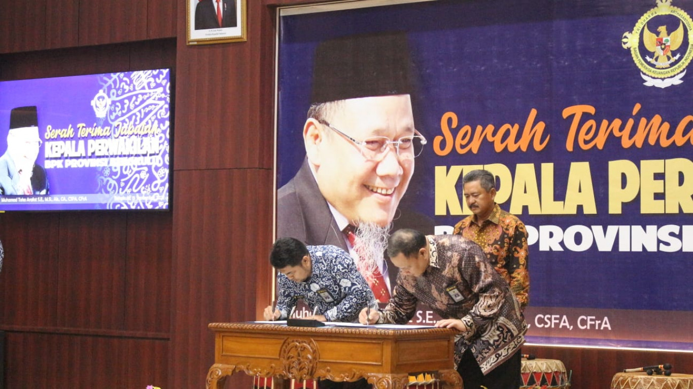 Serah terima jabatan kepala BPK Perwakilan Provinsi Bengkulu dari Muhammad Hidayat ke Muhammad Toha Arafat, SE.,M.Si, AK, CA, CSFA, CFrA