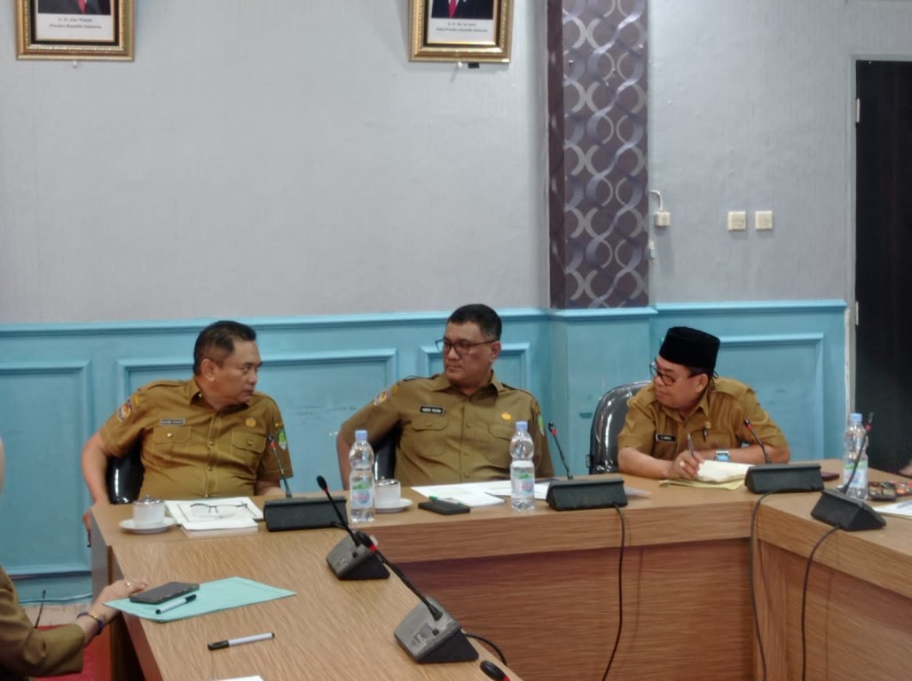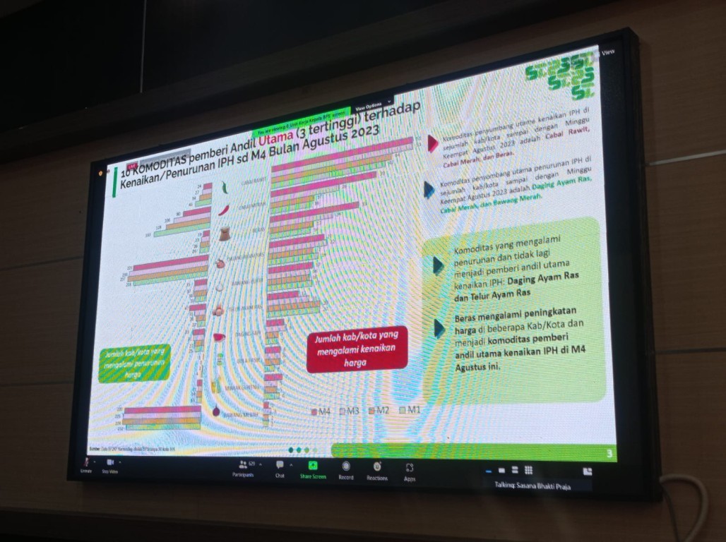 Pj Bupati Bengkulu Tengah Dr. Heriyandi Roni, M.Si didampingi Sekretaris Dearah Drs. Rachmat Riyanto, S.T., M.AP., dan Tim Pengendalian Inflasi Daerah (TPID) mengikuti melalui zoom di Ruang Rapat Bupati (RRB). Senin (27/08/2023)
