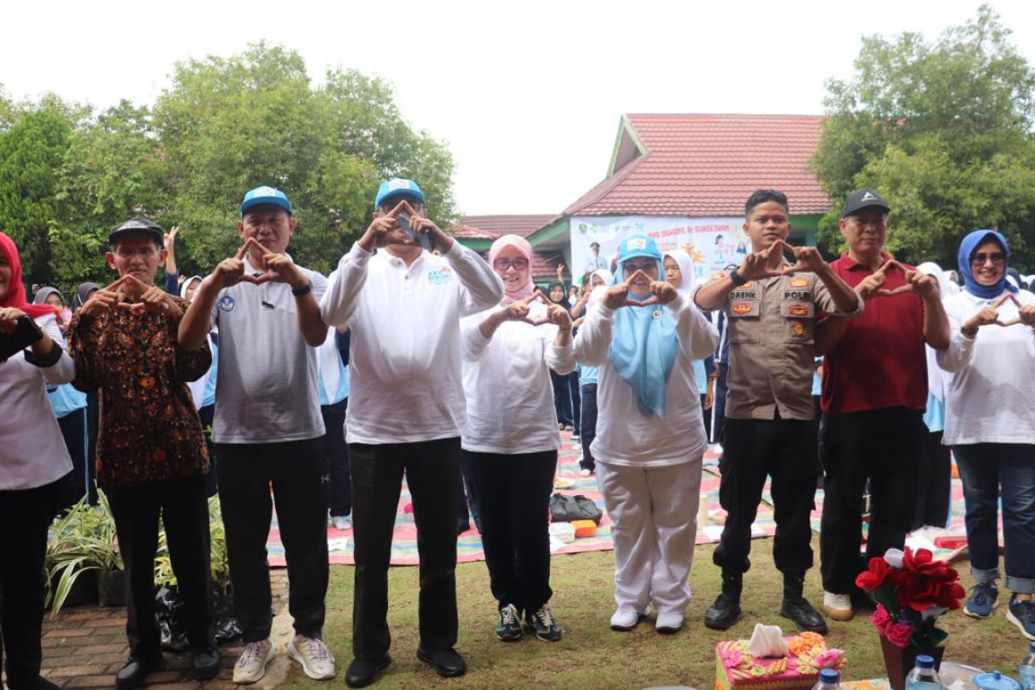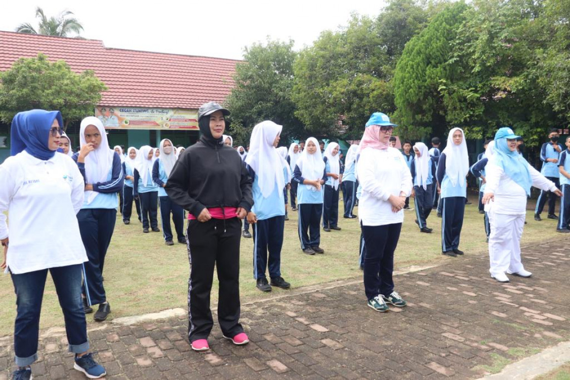 Tampak hadir Pj. Ketua TP PKK Ny. dr. Dian AR Heriyandi , Kadinkes Gusti Miniarti, S.Kep.,M.H., Kepala OPD/Bagian terkait lainnya, Kepsek SMA Negeri 3 Bengkulu Tengah, serta peserta Gerakan Nasional Aksi Bergizi.