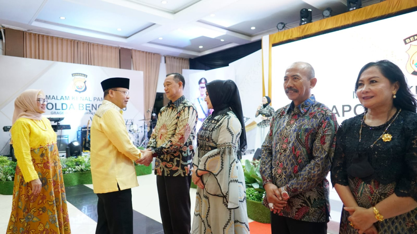 Bengkulu - Penjabat Bupati Bengkulu Tengah Dr. Heriyandi Roni, M.Si., menghadiri acara Kenal Pamit Kepala Kepolisian Daerah Bengkulu dari Irjen Pol. Drs. Agung Wicaksono, M.Si., kepada Irjen Pol. Drs. Armed Wijaya, M.H., di Krakatau Ballroom Hotel Grage Bengkulu. Selasa malam (3/1/2023)