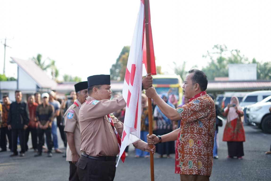 Pelepasan Peserta Jamnas Kwarcab Gerakan Pramuka Bengkulu Tengah berlangsung di Halaman Kantor Bupati. Kamis Pagi (11/8/2022)