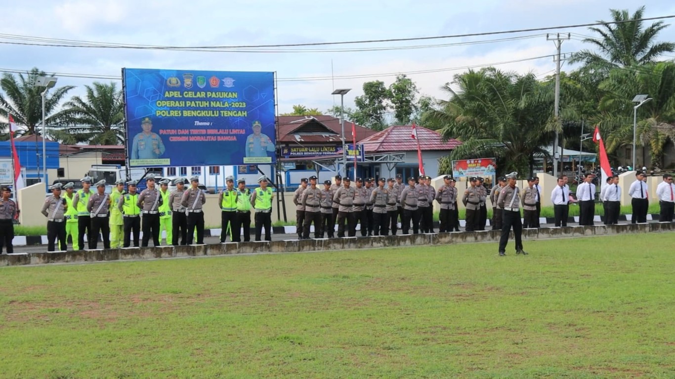 Bengkulu Tengah – Polres Bengkulu Tengah melaksanakan apel gelar pasukan operasi patuh nala 2023 dalam rangka menciptakan kondisi keamanan, ketertiban, dan kelancaran berlalu lintas (Kamtibcarlantas) pasca pelaksanaan peringatan HUT Bhayangkara tahun 2023, Senin (10/07/2023).
