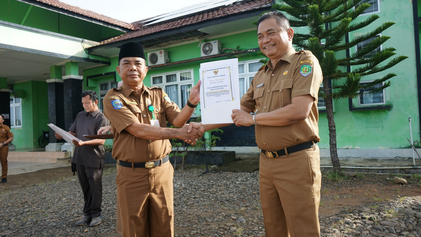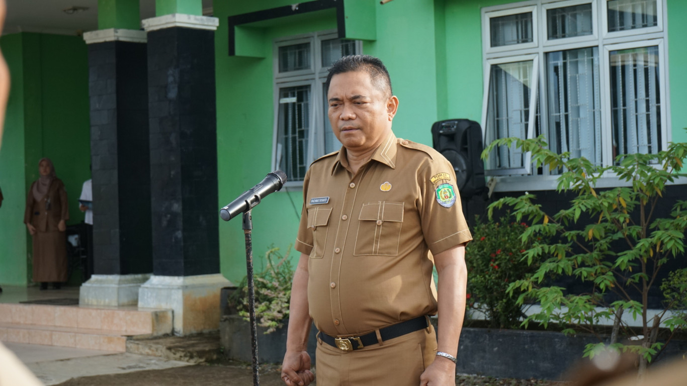Bengkulu Tengah - Dalam rangka menertibkan ketepatan waktu kehadiran Aparatur Sipil Negara (ASN) di ruang Lingkup Pemerintah Kabupaten Bengkulu Tengah, Sekretaris Daerah Drs. Rachmat Riyanto, S.T., M.AP memimpin Apel Gabungan Lanjutan yang berlangsung di Halaman Kantor Dinas Kependudukan dan Pencatatan Sipil (Dukcapil) Komplek Perkantoran Rena Semanek, Kecamatan Karang Tinggi. Senin Pagi (30/1/2023)