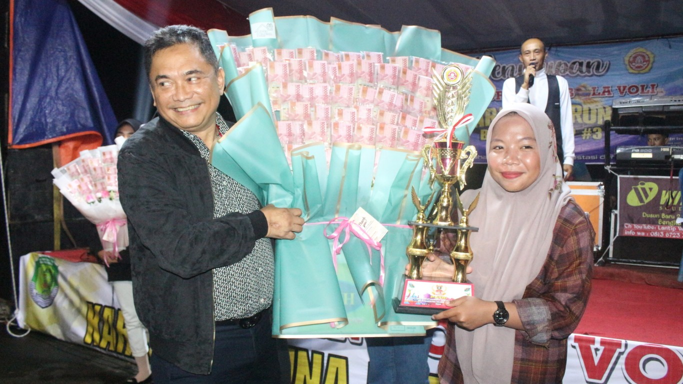 Setelah sambutan berlangsung, kegiatan dilanjutkan dengan pemberian hadiah berupa piala tetap dan uang pembinaan bagi tim yang memperoleh juara 1, 2, 3 dan harapan 1, ada juga pemberian piala dan uang pembinaan bagi pemain terbaik. Demikian (MC/TIM)