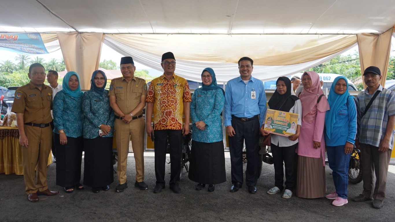 Setelah Sambutan berlangsung , Ketua TP PKK Provinsi Bengkulu bersama PJ. Ketua TP PKK Bengkulu Tengah, PJ. Bupati memberikan bantuan berupa alat-alat UMKM, Alat pertanian, Makanan Batita dan Ibu Hamil serta beberapa bantuan lainnya secara simbolis kepada penerima. (MC/EK)